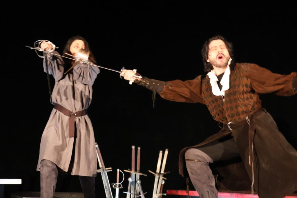 La dirección de la maestra Tagle incluye movimientos corporales que simulan los constantes enfrentamientos entre los caballeros de las cortes europeas, enfrentamientos que no podían faltar en esta puesta en escena de corte épico y, qué a manera de sinopsis la compañía creativa presenta con el siguiente párrafo textual: