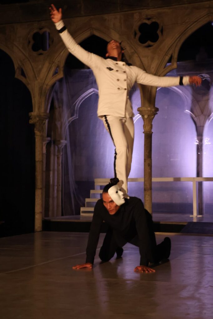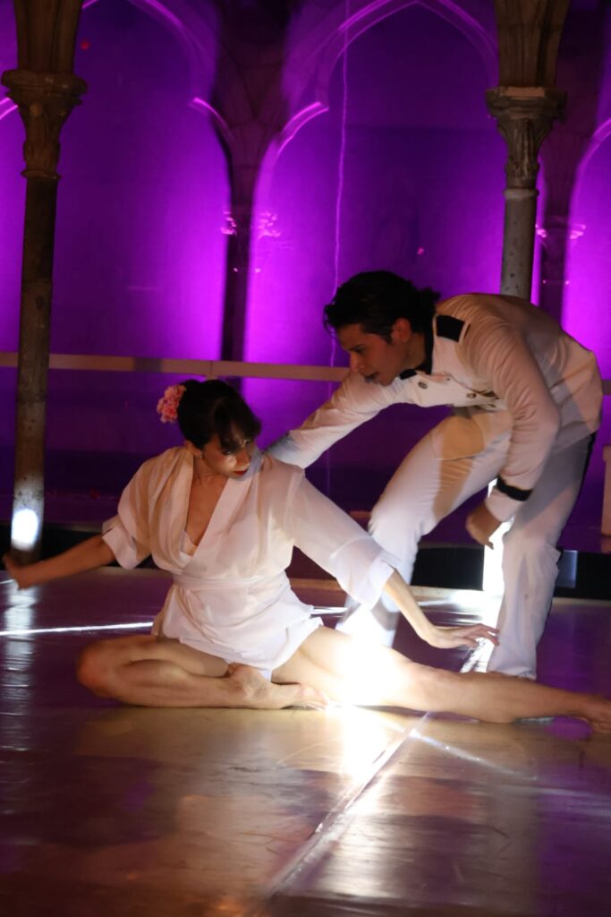Ópera-Drama la cual está siendo representada en la hermosa Capilla Gótica del Instituto Helénico que enmarca la excelente dirección y coreografía de Rodrigo González (junto con todo el equipo creativo), quien logra imponer un estético y elegante estilo con el elenco integrado por los bailarines: Paulina del Carmen, Alan Huerta, Ana Paula Ricalde y José Ortiz, que armoniza con “La Capilla”.