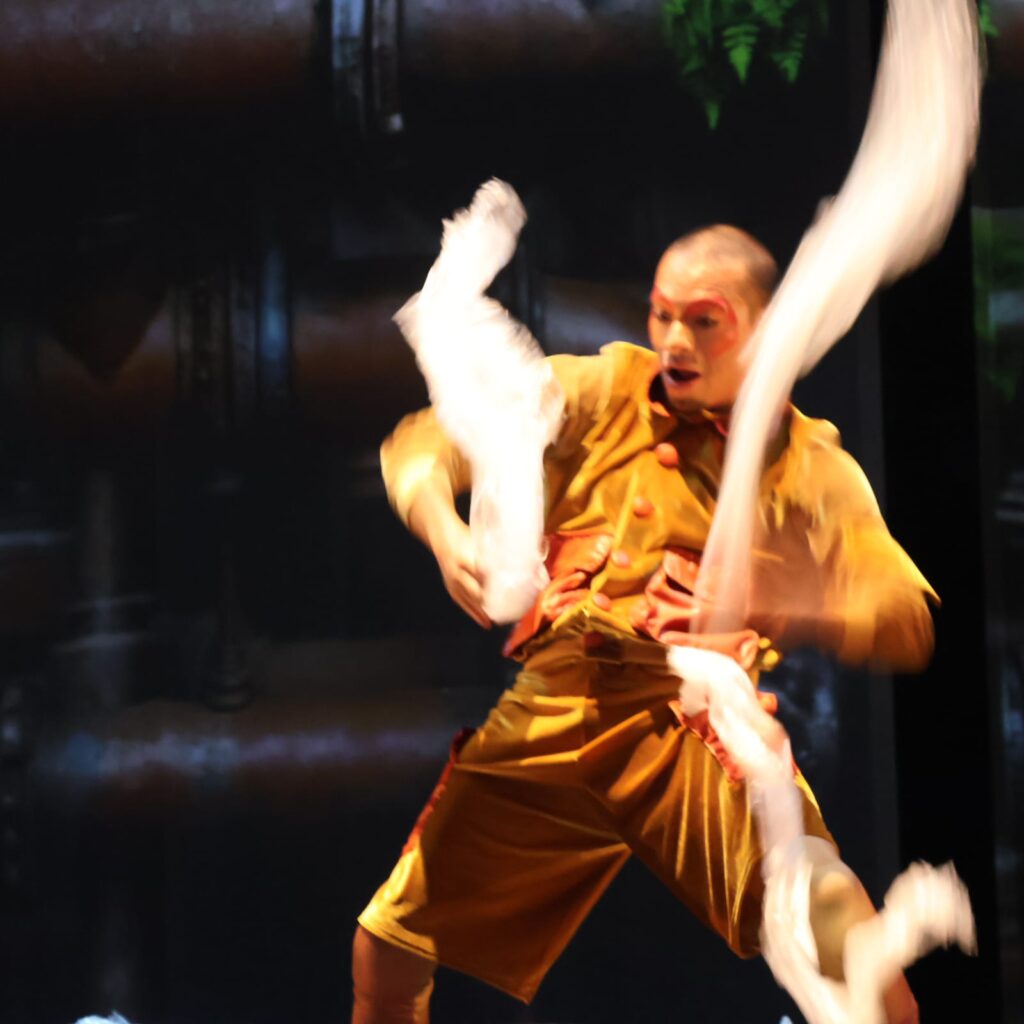 La coreografía por supuesto, también es espléndida, incluyendo variados números dancísticos y algunos números de difícil realización, con los movimientos rítmicos en el ascenso de algunas cuerdas y soportes.
