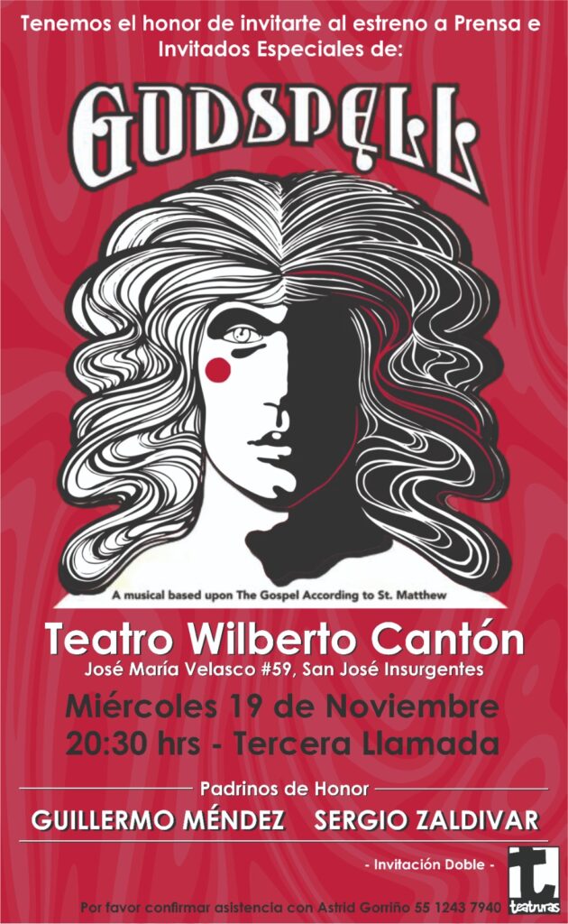 GODSPELL de John-Michael Tebelak (Ohio 1949-1985) y Stephen Schwartz escrito en 1973, se ha convertido en uno de los grandes musicales de antes y del momento, que hoy en día está siendo escenificada en México bajo la Producción General de Gabriel Varela y la Producción Ejecutiva de Astrid Gorriño y la dirección escénica de Juan Francisco Yáñez.